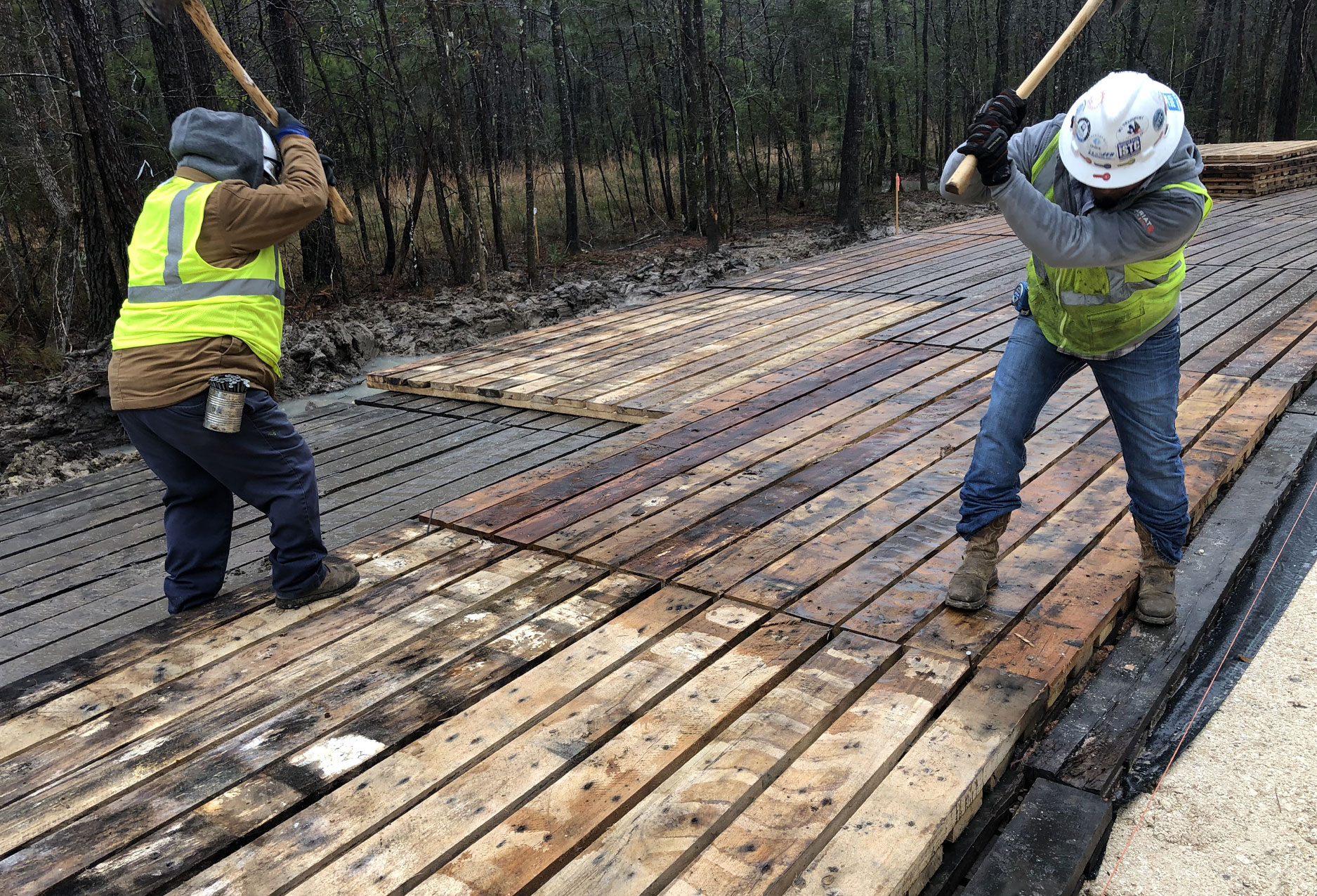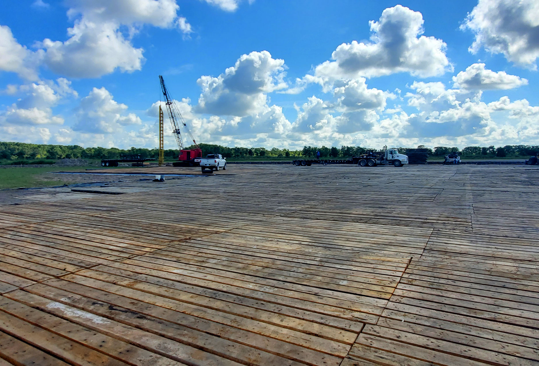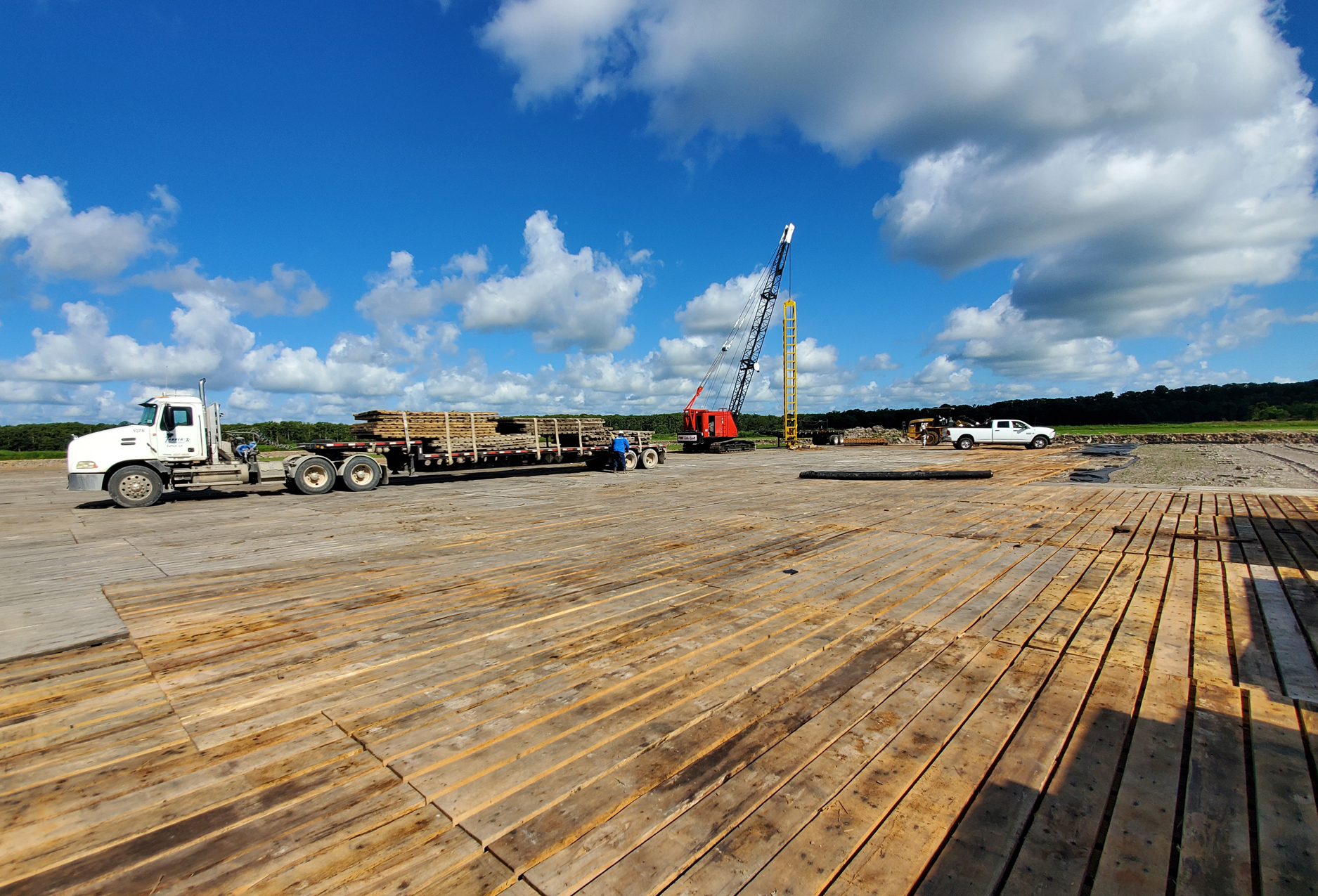 Additionally, we employ skilled and professional personnel that offer a multitude of construction services. Some of these services include: site preparation, excavation, board road mats, crushed concrete, frac ponds, bridge building, pile driving, and more.